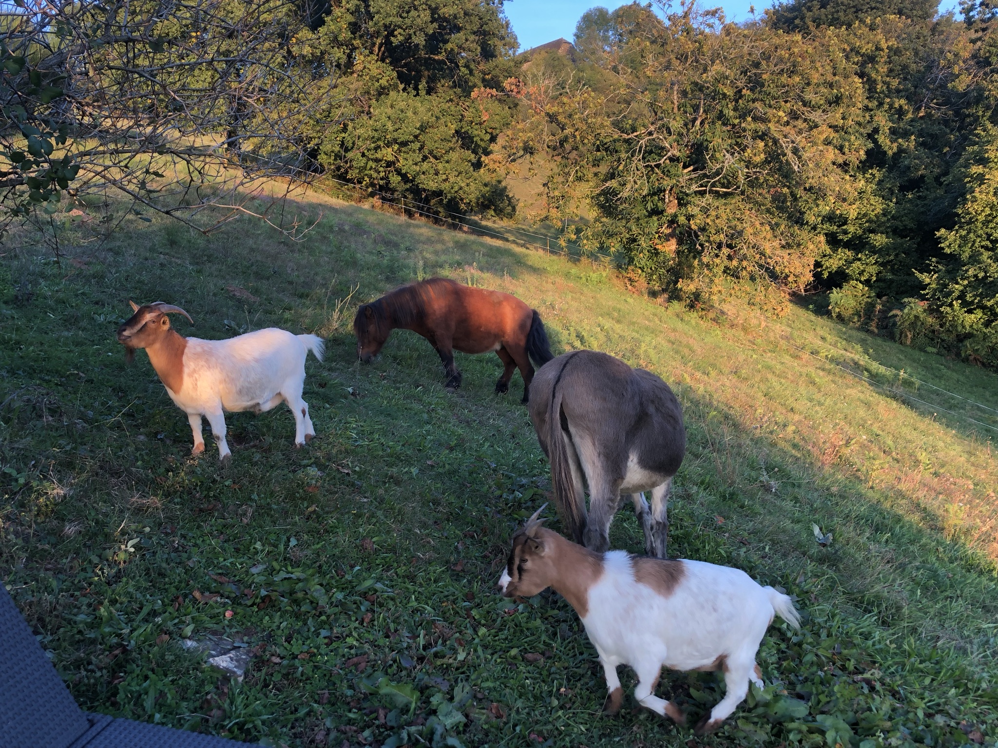 Notre voisine Angélique possède des chèvres de race Boers. Vous pourrez les rencontrer en promenade sur la route ou entendre leurs clochettes