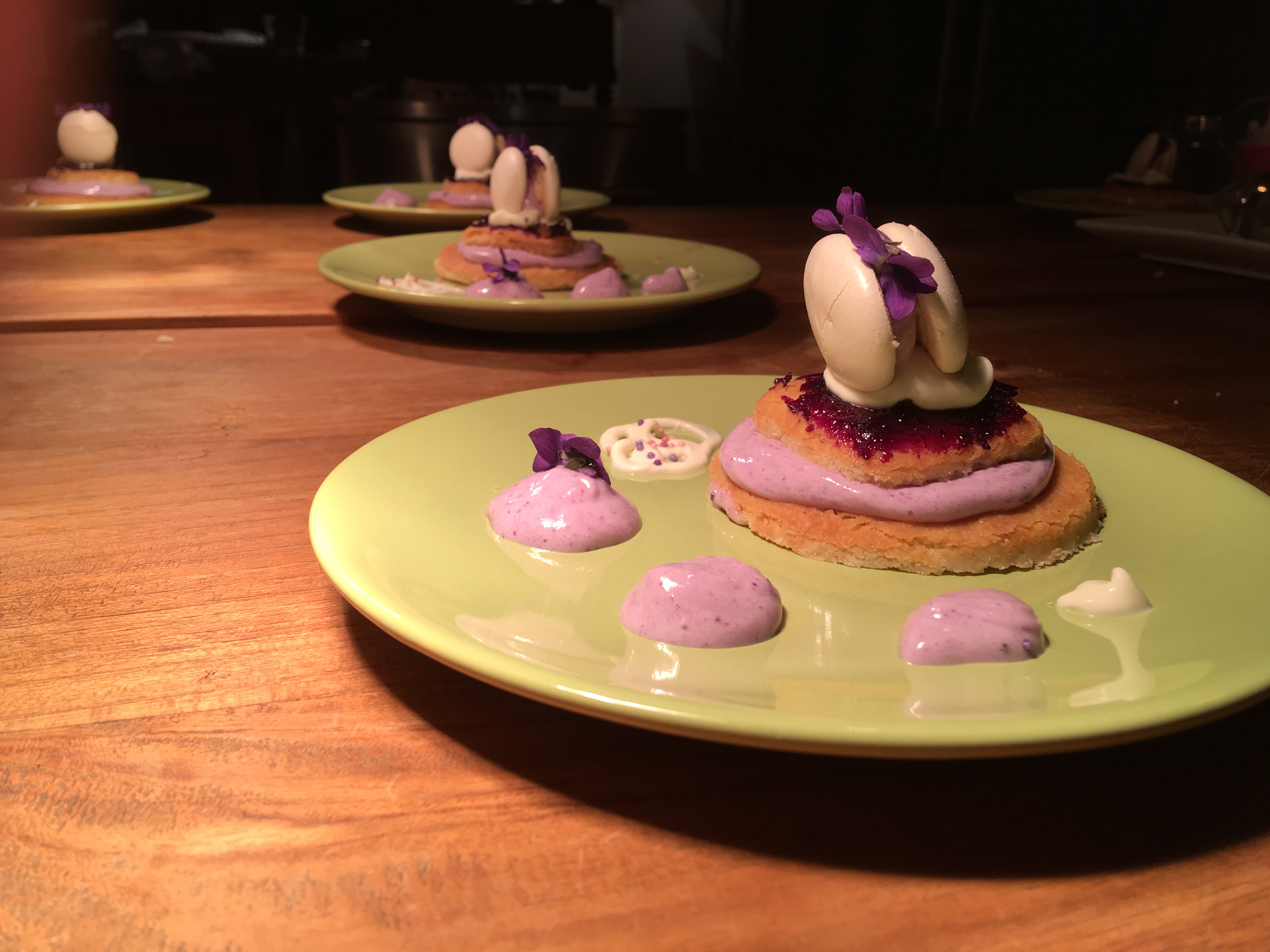 Sablé avec crème mascarpone au cassis, meringues maison et violettes 😋😋